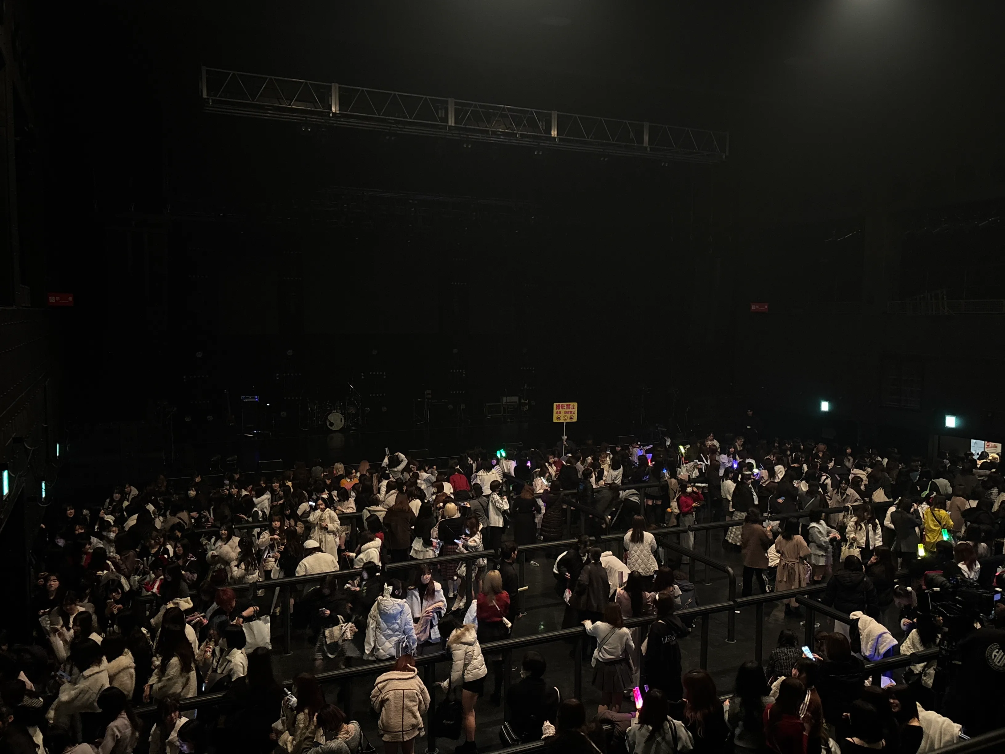 • 開場時間を過ぎてから会場に到着。列がどうなっているかよくわからず右往左往したのち、入り口向かって右側に2階指定席の列が形成されていることを確認。既に長蛇の列になっており、また先に1階スタンディングから入場させる関係でいつ入場になるかもわからない状況で並んだ。